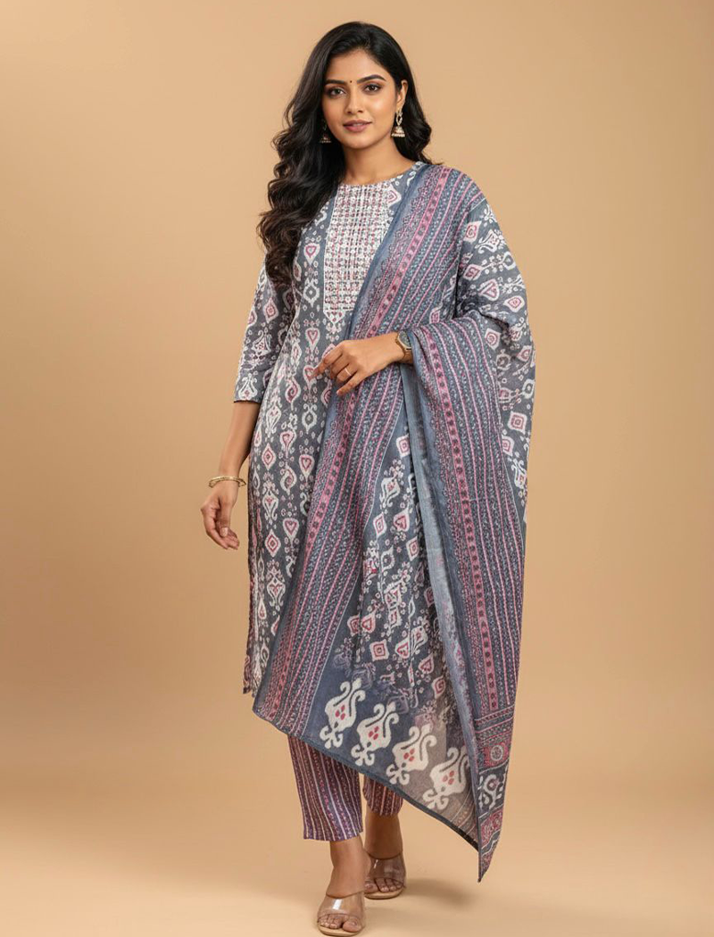 Cotton side cut Kurtis with Pant and Dupatta Set