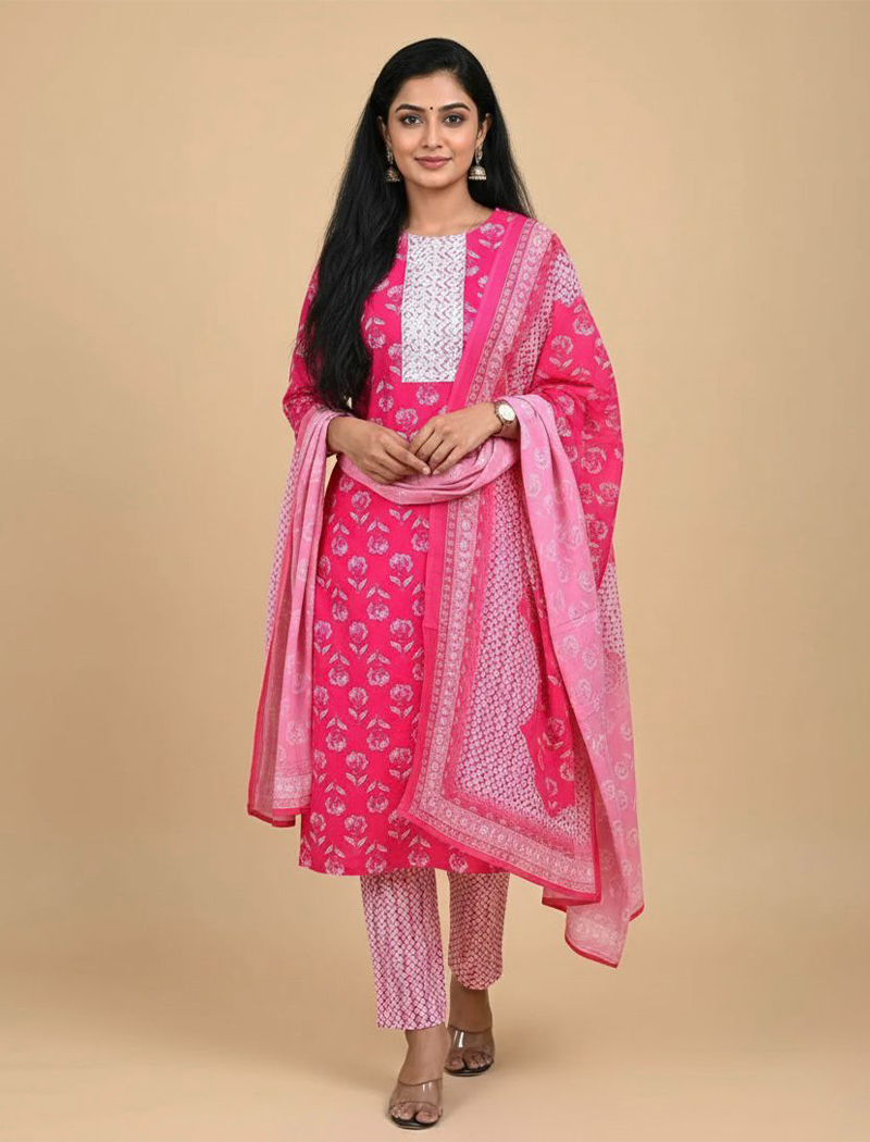 Premium Quality Cotton Kurti with pant and Dupatta