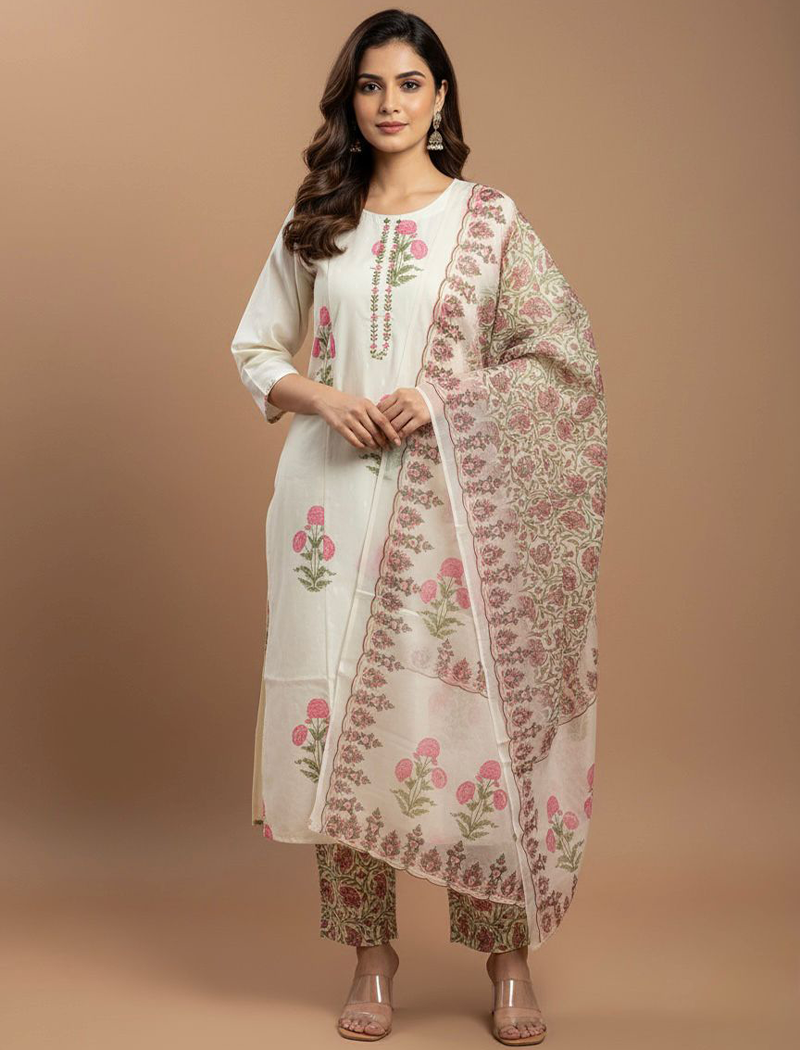 Premium Quality Cotton Kurti with pant and Dupatta