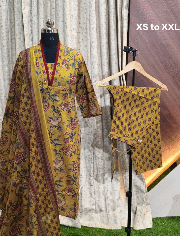 Premium Quality Cotton Kurti with pant and Dupatta