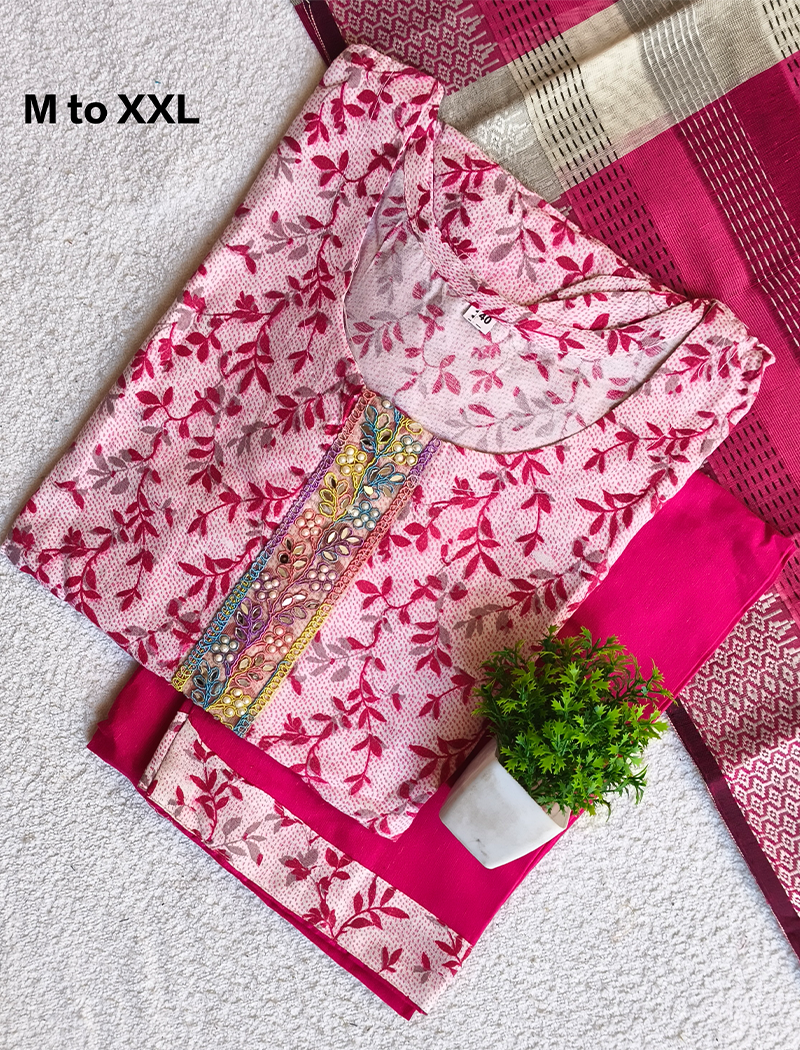 Cotton side cut Kurtis with Pant and Dupatta Set