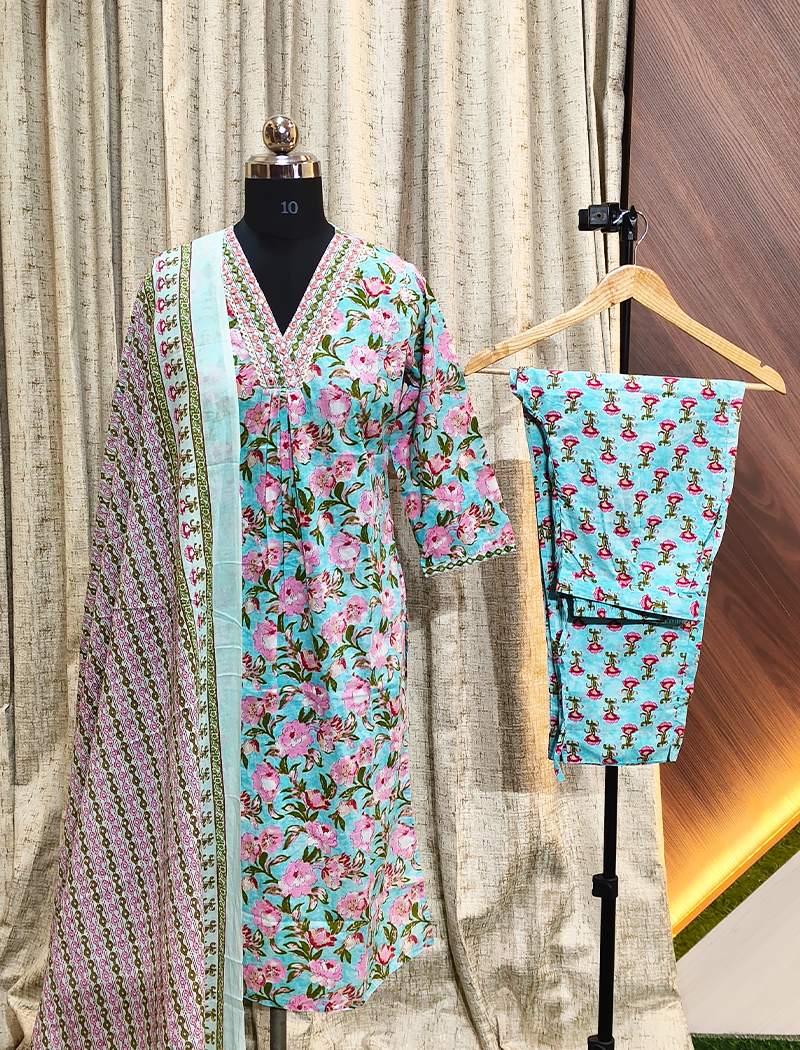 Cotton side cut Kurtis with Pant and Dupatta Set