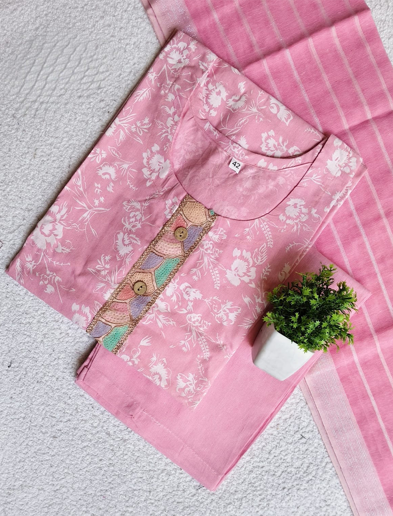 Cotton side cut Kurtis with Pant and Dupatta Set