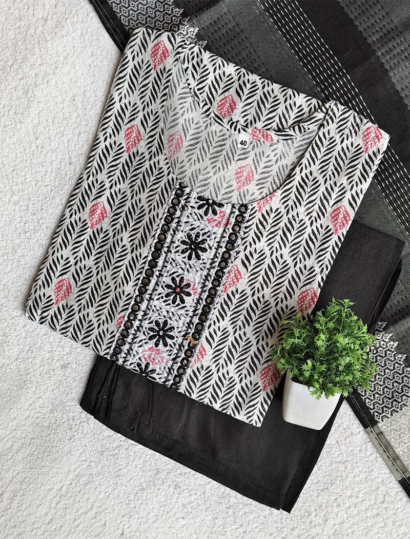 Cotton side cut Kurtis with Pant and Dupatta Set