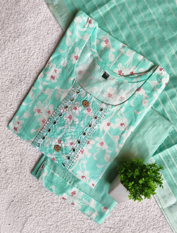 Cotton side cut Kurtis with Pant and Dupatta Set