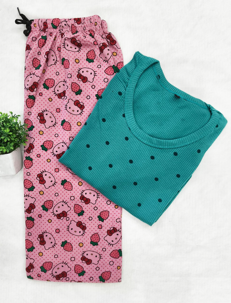 Womenโs knitted cotton T-shirt with night pant