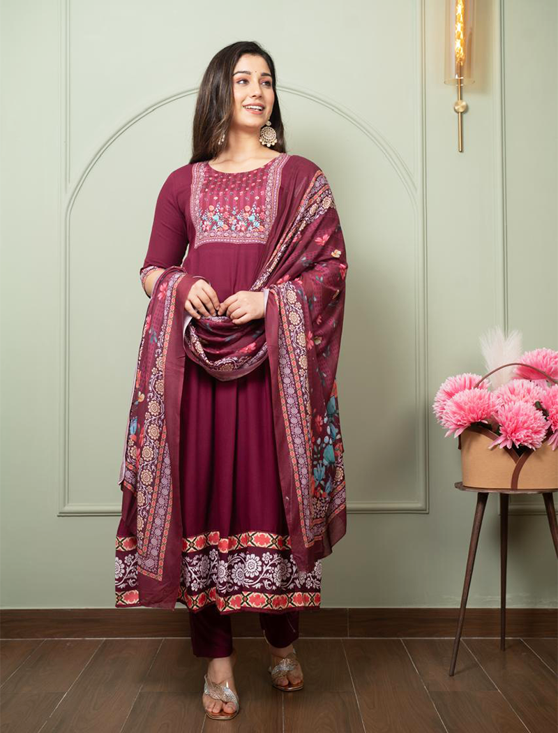 Heavy Rayon Anarkali Kurtis with pant and dupatta