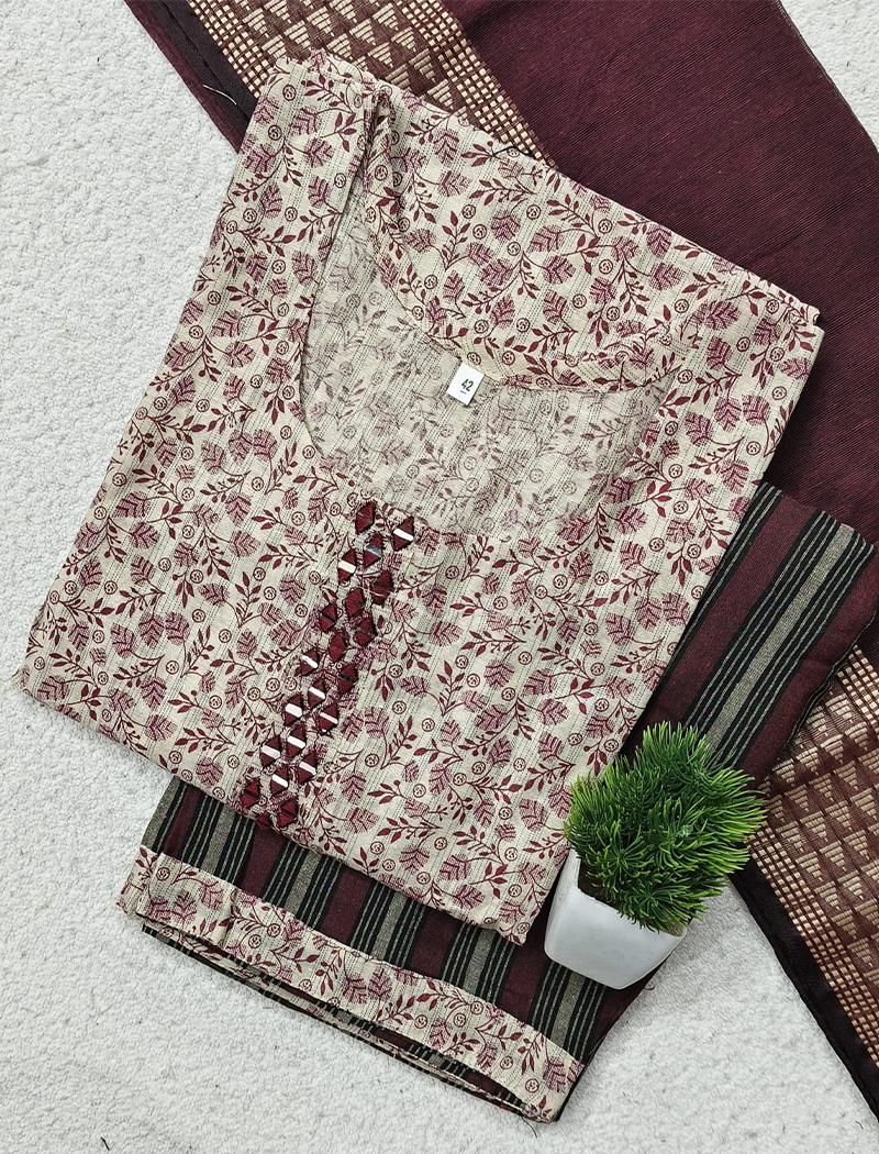 Cotton side cut Kurtis with Pant and Dupatta Set