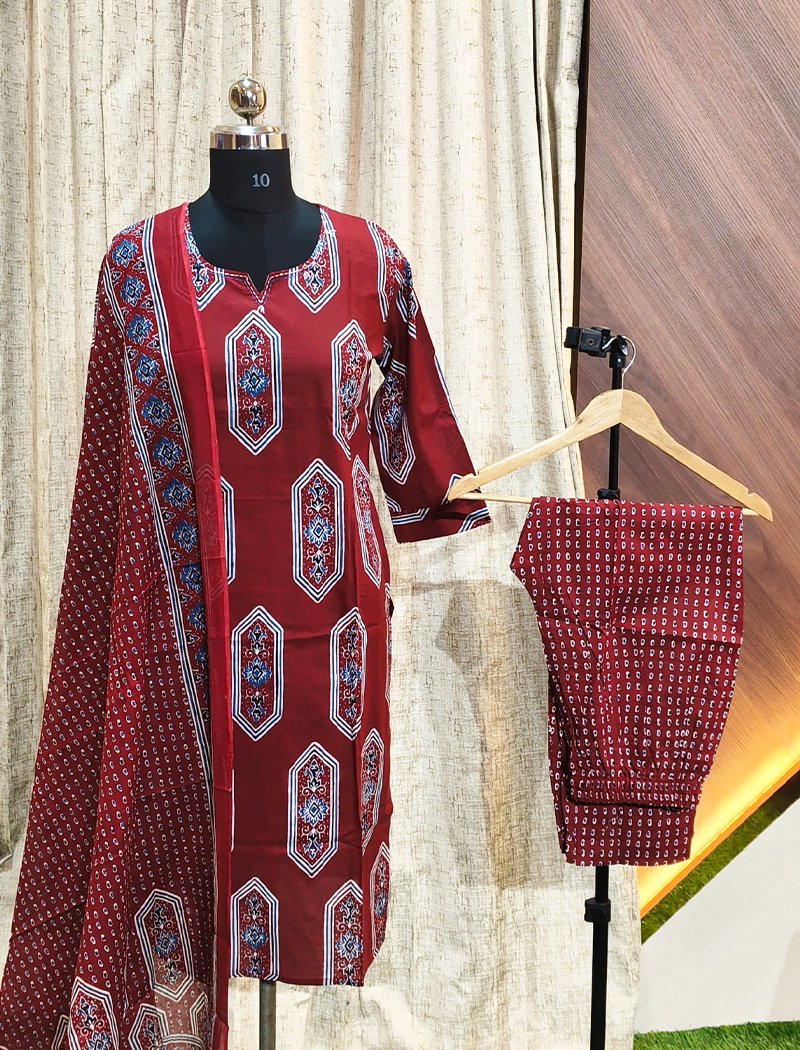 5446 – Cotton Kurti with Pant and Dupatta