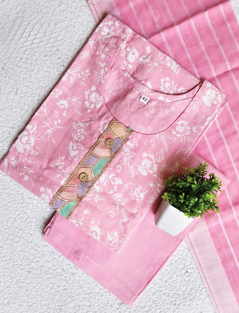 Cotton side cut Kurtis with Pant and Dupatta Set