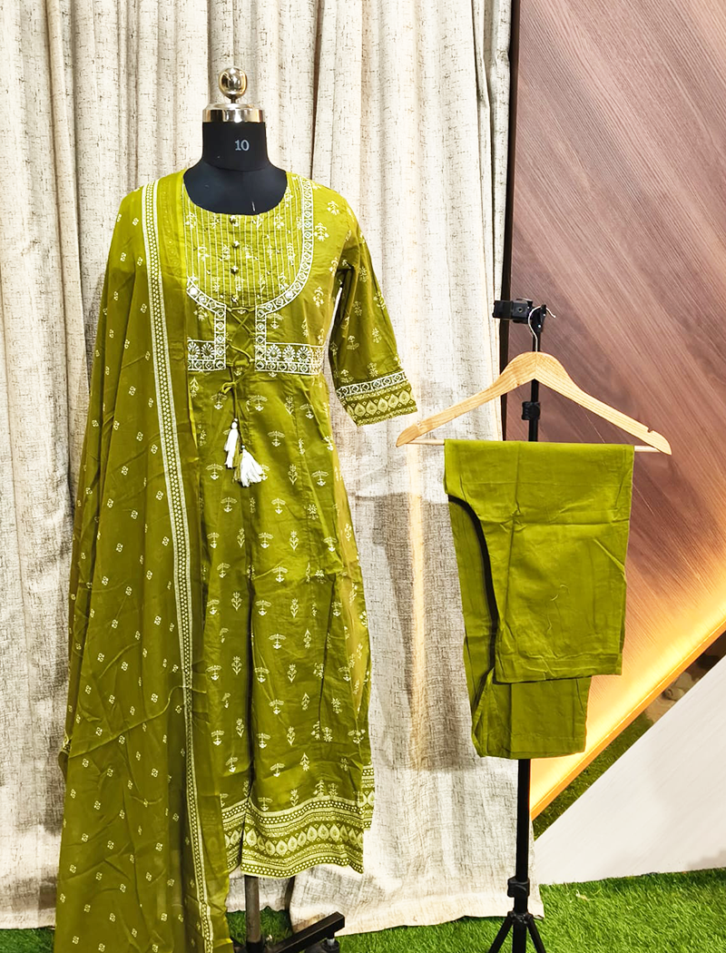 Cotton side cut Kurtis with Pant and Dupatta Set