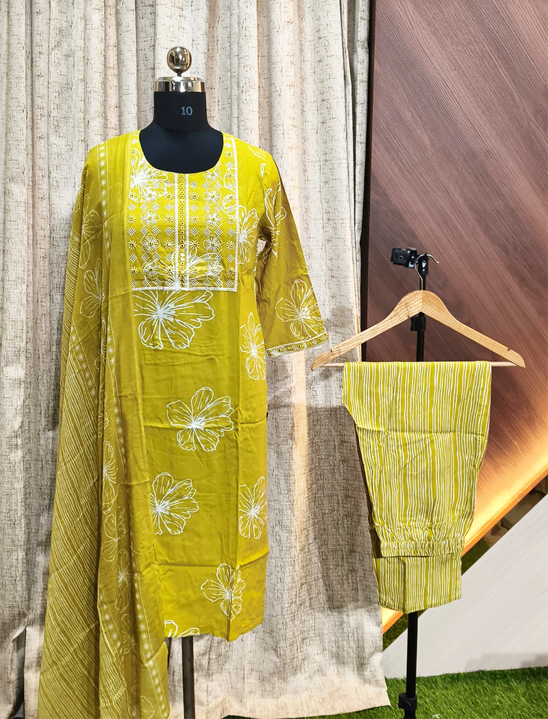 Cotton side cut Kurtis with Pant and Dupatta Set