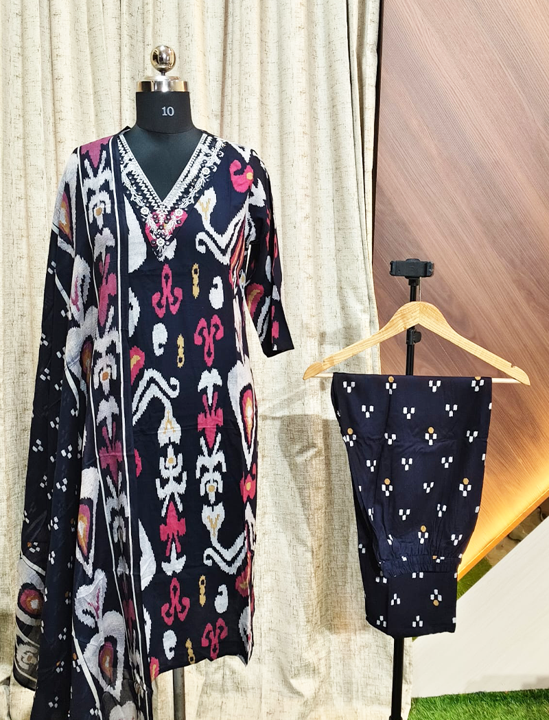 Cotton side cut Kurtis with Pant and Dupatta Set
