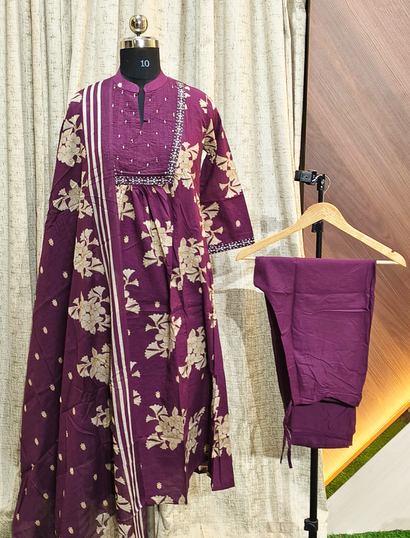 Cotton side cut Kurtis with Pant and Dupatta Set