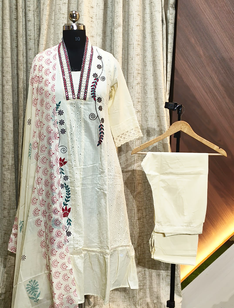 Cotton side cut Kurtis with Pant and Dupatta Set