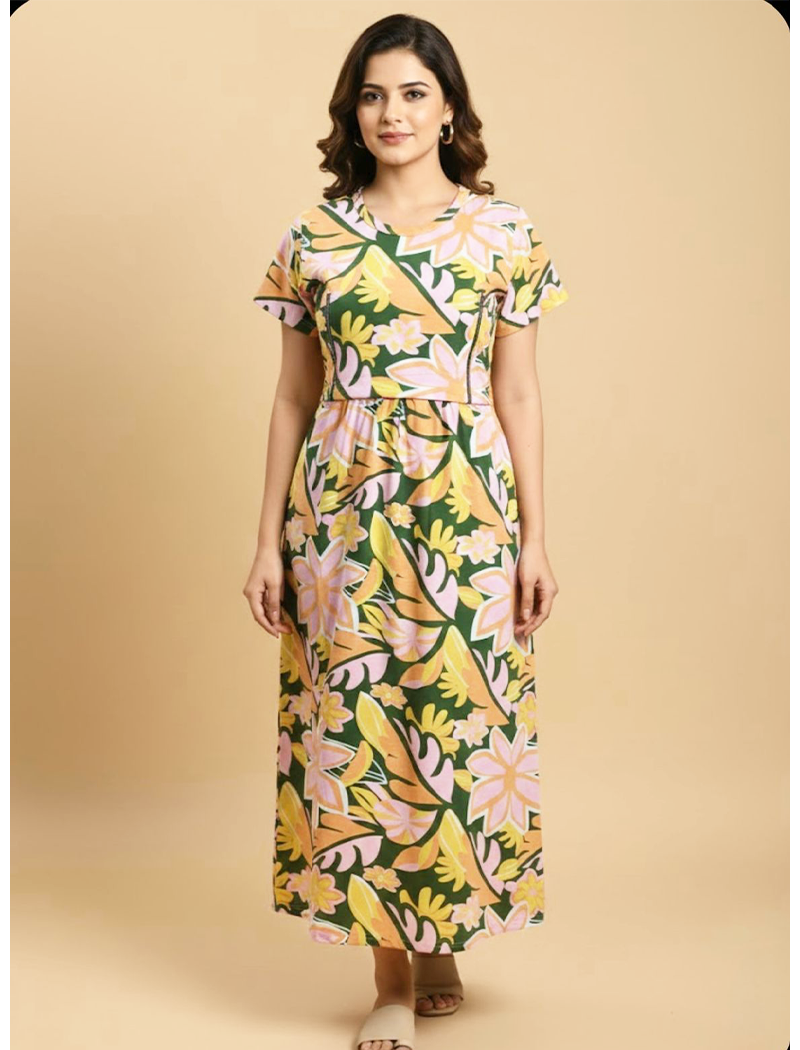 Knitted cotton U neck casual Feeding Maxi