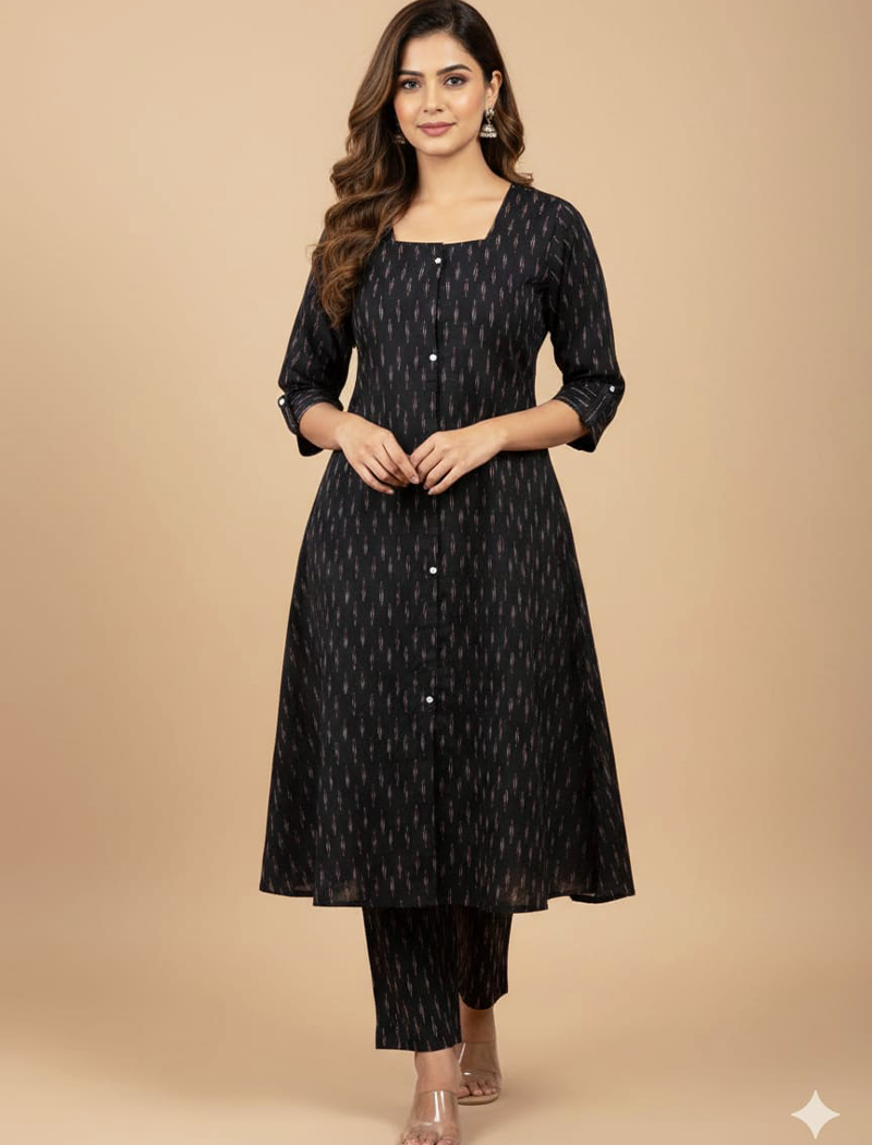 A Line Kurti with side packet trendy neck designs and straight cut pant