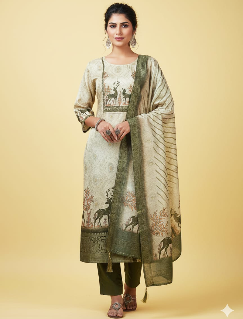 Vertican Silk Kurtis with pant and dupatta