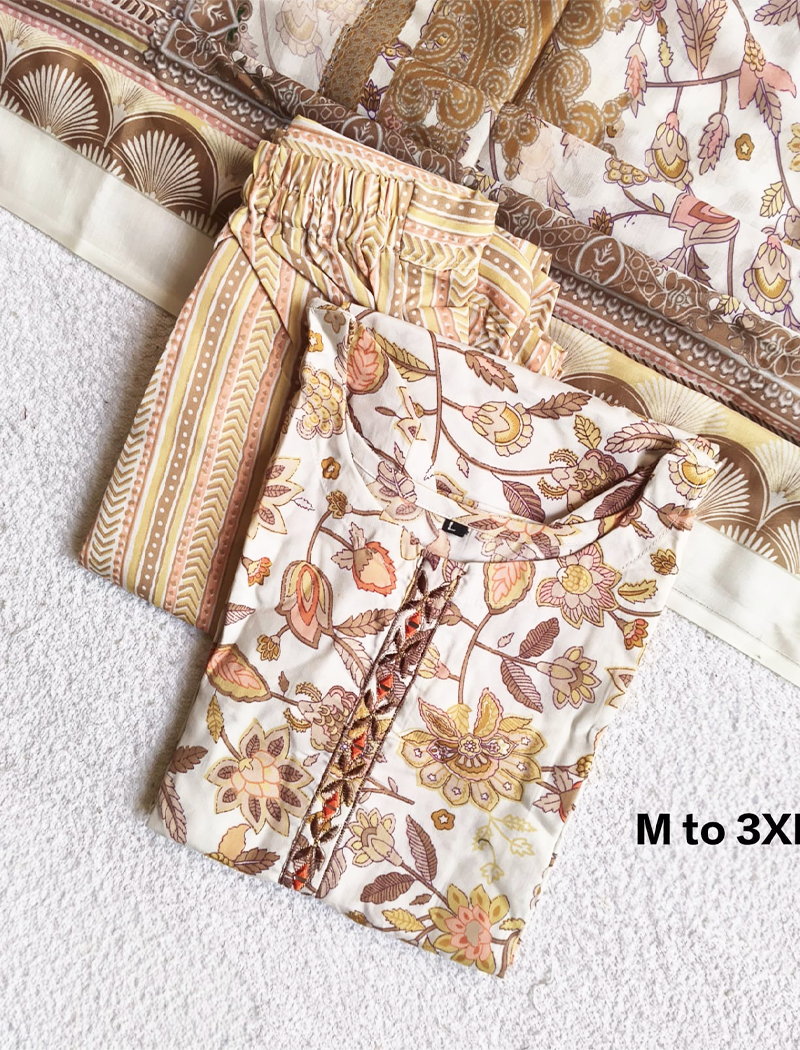 Premium Quality Cotton Kurti with pant and Dupatta
