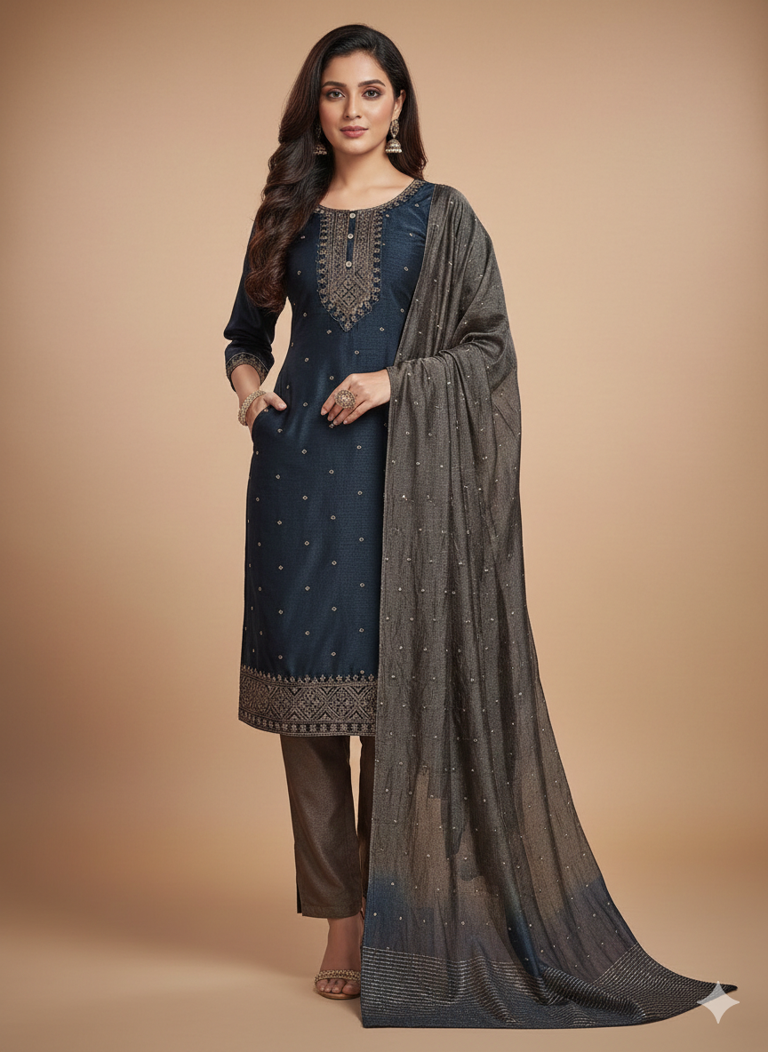 7164 – Kurti with Pant and Dupatta 3PC Copy