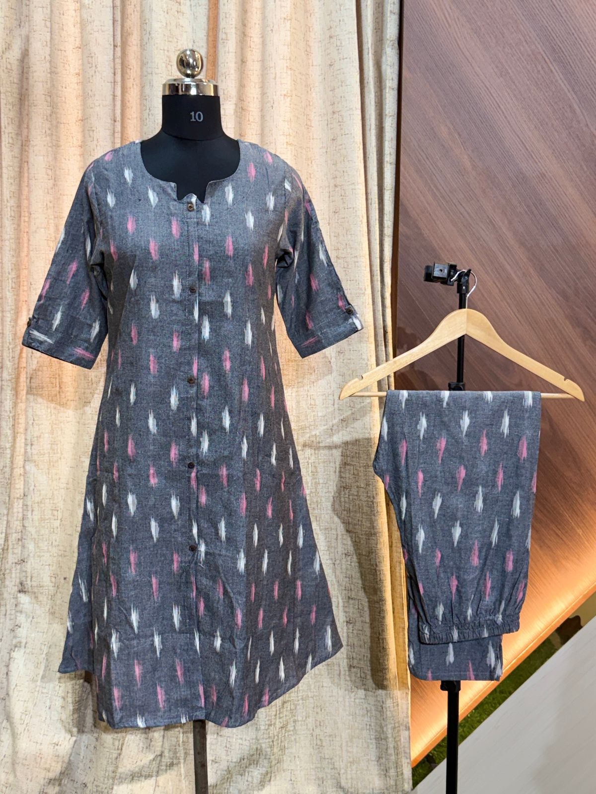 A Line Kurti with side packet trendy neck designs and straight cut pant