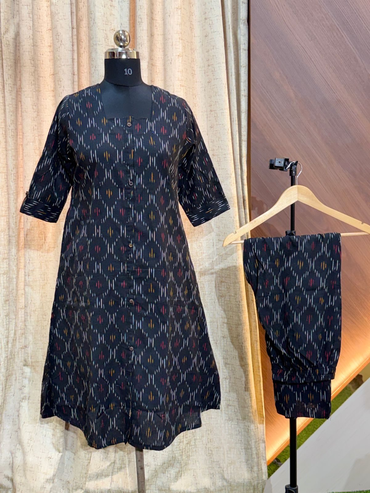 A Line Kurti with side packet trendy neck designs and straight cut pant